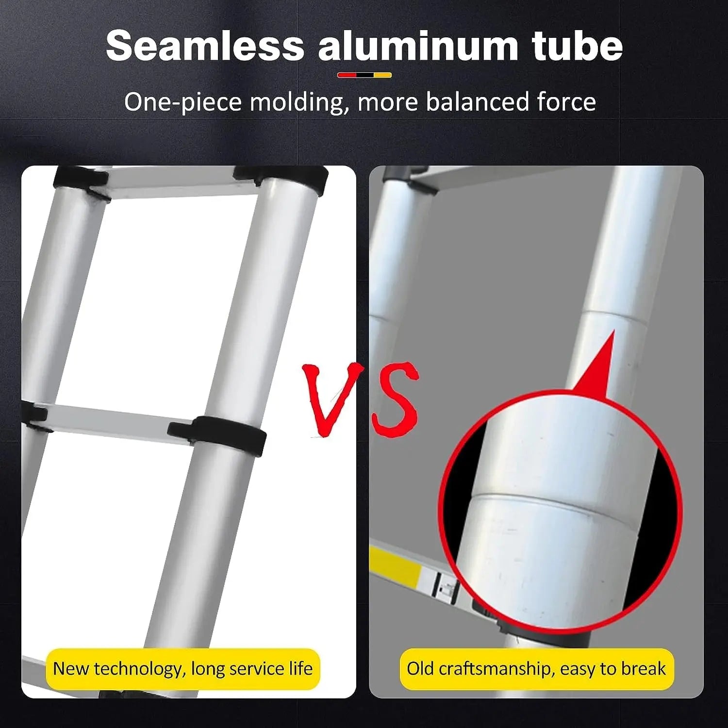 ✅Teleskop-Design: Die 5 Meter lange zusammenklappbare Leiter hat insgesamt 12 Sprossen. 12 Sprossen mit Riegeln ermöglichen es Ihnen, die Leiter einfach von 95 cm auf 500 cm auszufahren und so die gewünschte Höhe zu erreichen; ideal für gewerbliche Bauunternehmer und ernsthafte Heimwerker.